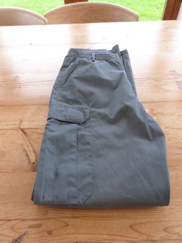 Grey, waist approx 75cm, length 110cm. Suitable for Duke of Edinburgh walks. As new. Waterproof.