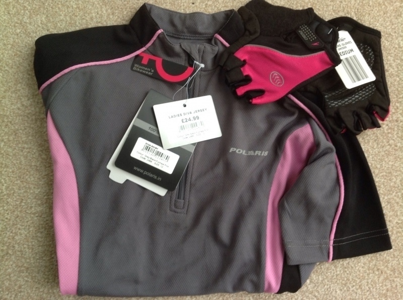 Polaris Diva S/S Jersey Size12 Grey/Pink/Black & Pair Fingerless Cyclegloves. New Unworn c/w Labels
