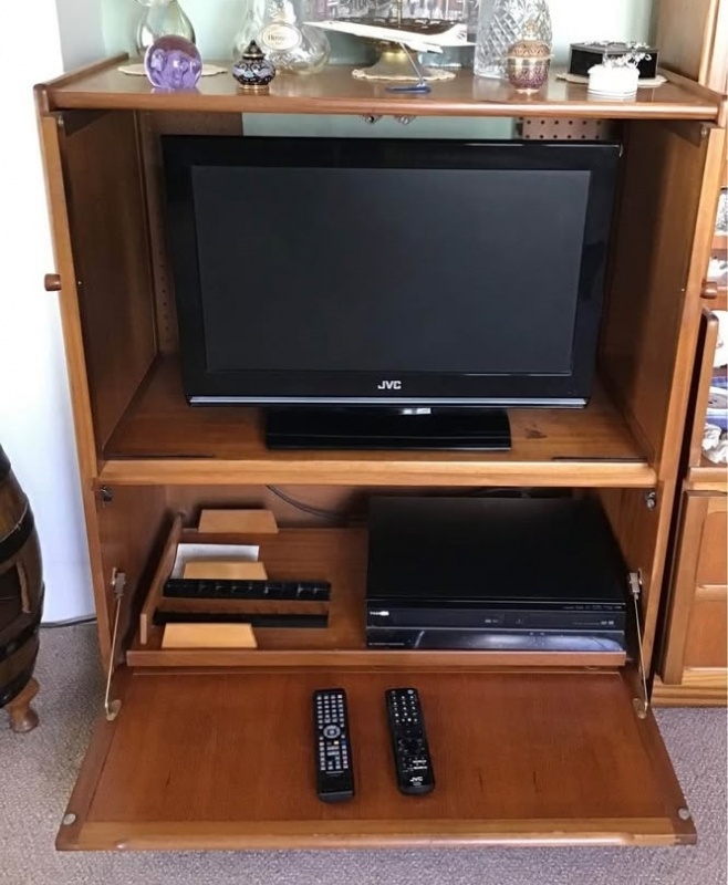 Teak TV cabinet, 37ins x18ins £30. JVC 26ins TV £25,Toshiba DVD/Video player £25. Buy all three for £70ono
