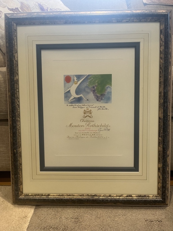 Framed Château Mouton Rothschild wine label poster 1982 after John Huston (87cm x 57cm)