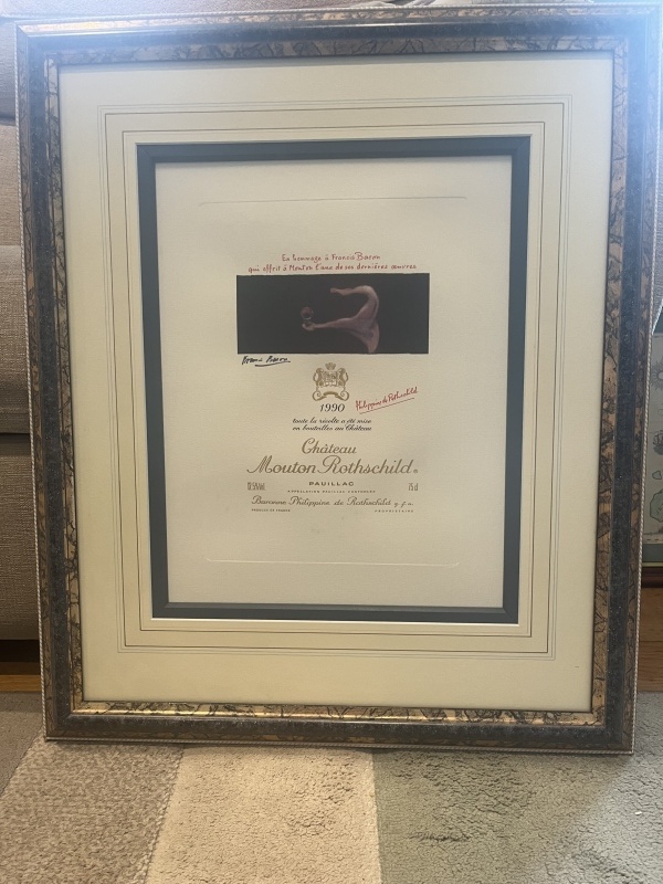 Framed Château Mouton Rothschild wine label poster 1990 after Francis Bacon (87cm x 57cm)