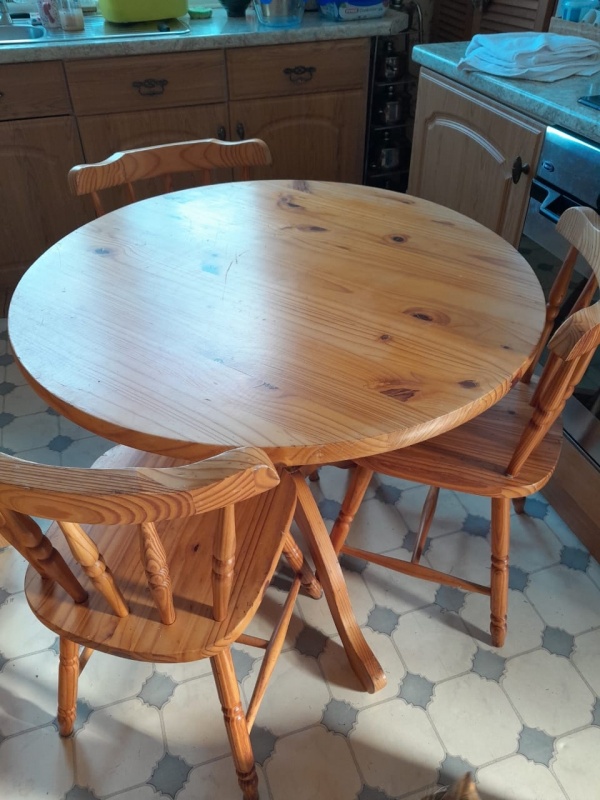 Round Pine table with 3 chairs