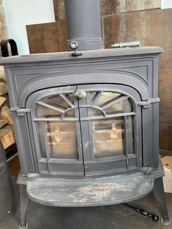 Vermont Intrepid II wood burning stove, cast iron. Needs some attention. Heavy, you collect.