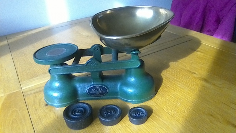 Original sweet shop scales, including pound, 8oz and 4oz measures.