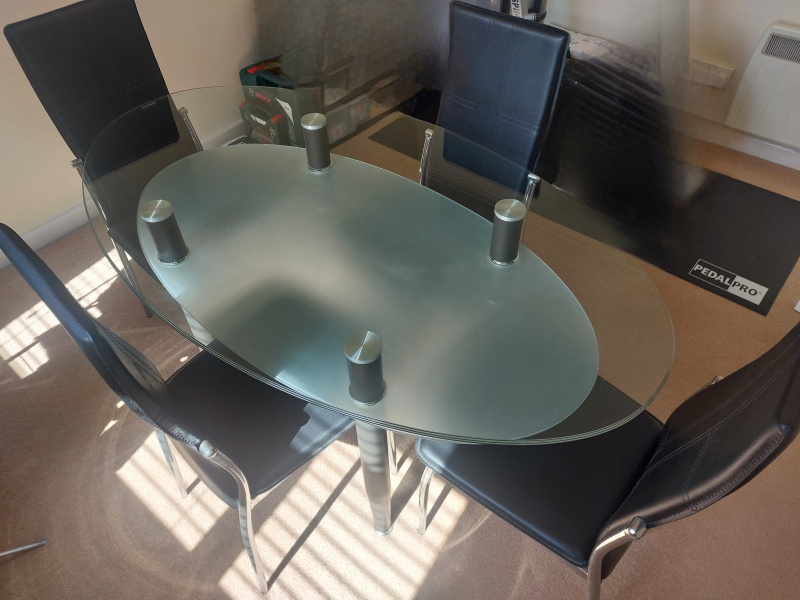 Glass dining table and 4 chairs L: 55" W: 31.5" H: 30"