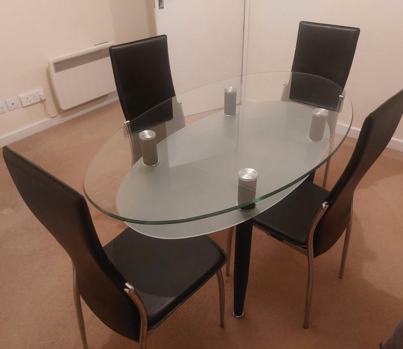 Glass dining table and 4 chairs: L: 55" W: 31.5" H: 30"