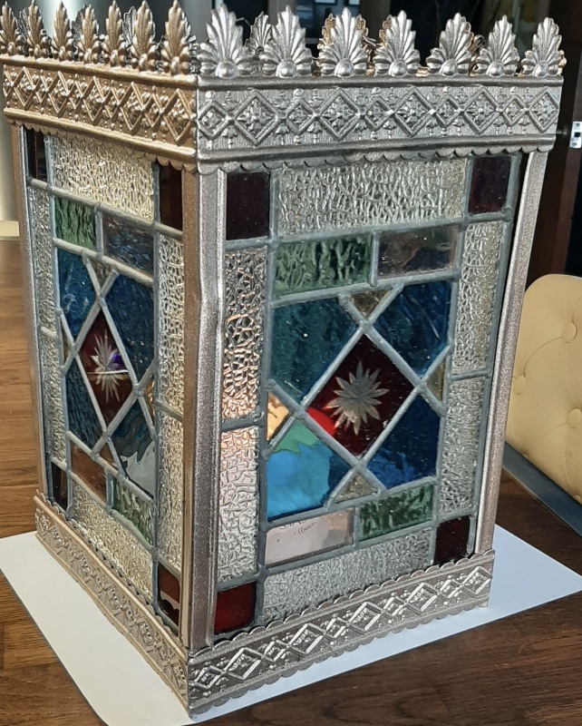 Victorian stain glass lampshade , with hanging chain.