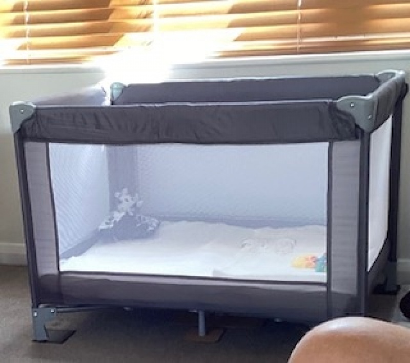 Red Kite travel cot in grey 101L x71W x72H cm as new used at grand parents house