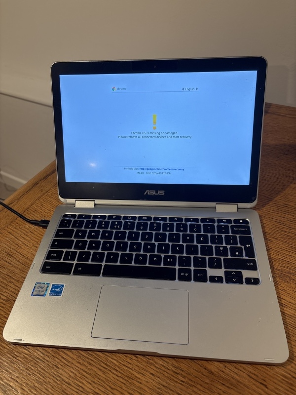 ASUS C302C spares or repair, error message on start up: ‘chrome OS missing/damaged’, charger and bag included