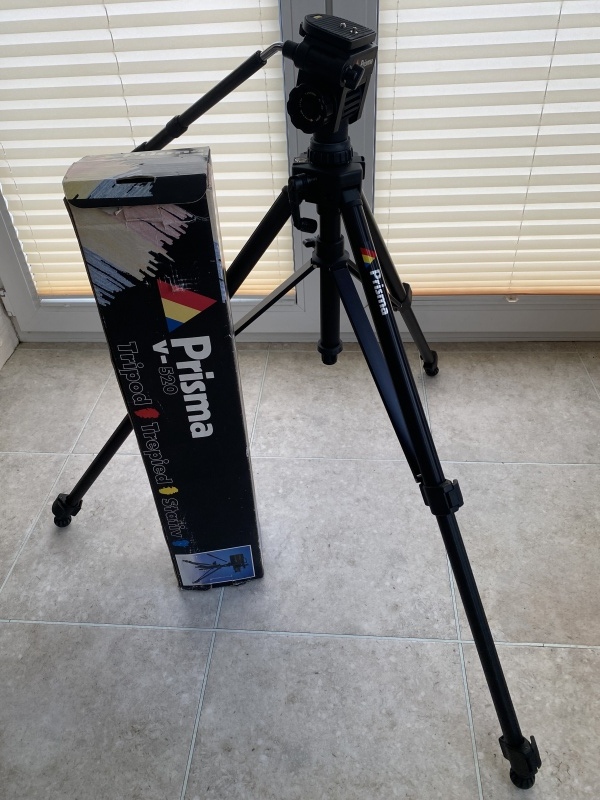 Camera tripod. Folded 75cm. Telescopic legs out,155cm. Excellent condition.