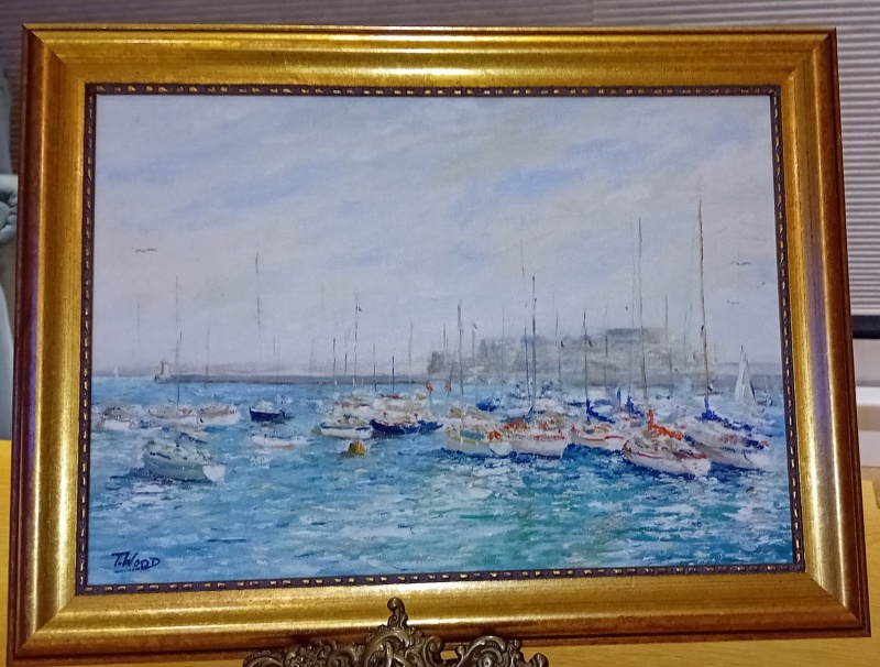 Framed oil 16 x12" Yachts with Castle Cornet Lcal artist Tim Wood