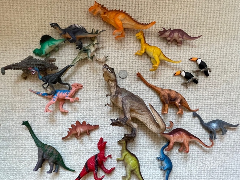 Lovely set of dinosaurs. See 10p in middle of picture to show sizing.