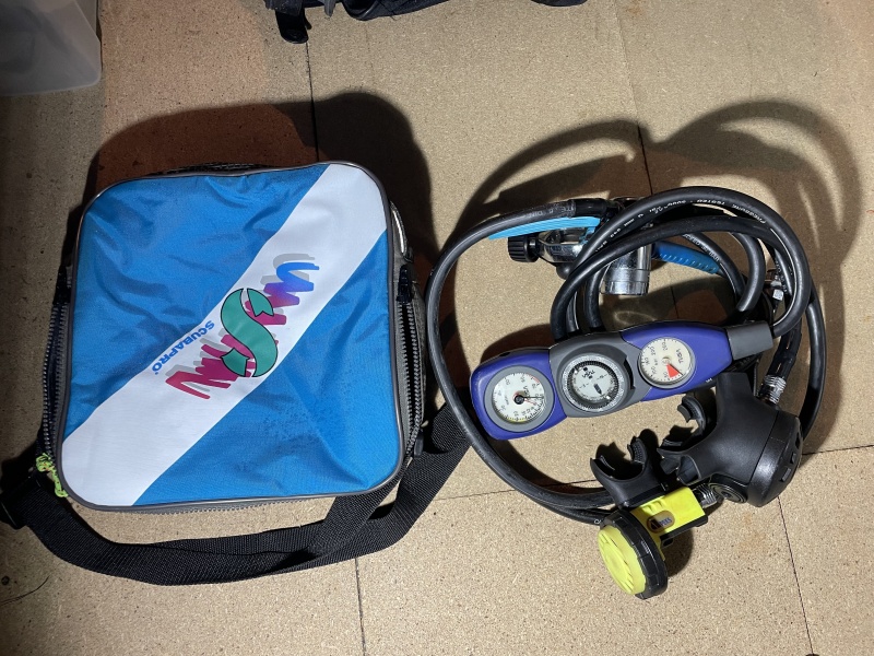 Scuba Diving Octopus with main and spare regs and gauge in storage bag No longer used