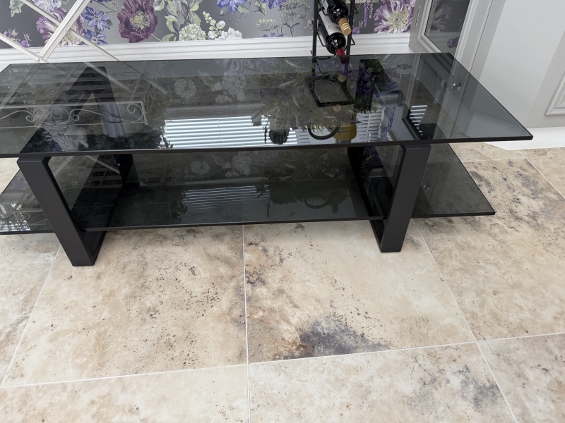 Quality Black glass 2 tier coffee table. 1200x450x330. Quality item.