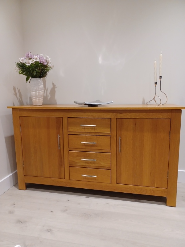Spacious sideboard with 2 large cupboards and 4 roomy drawers. Measuring W166cm D53cm H92cm Excellent condition.WhatsApp message me.
