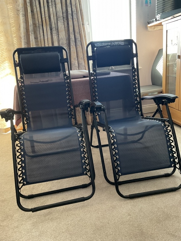 Foldable lightweight reclining sunloungers, vgc.Ideal for garden or beach.