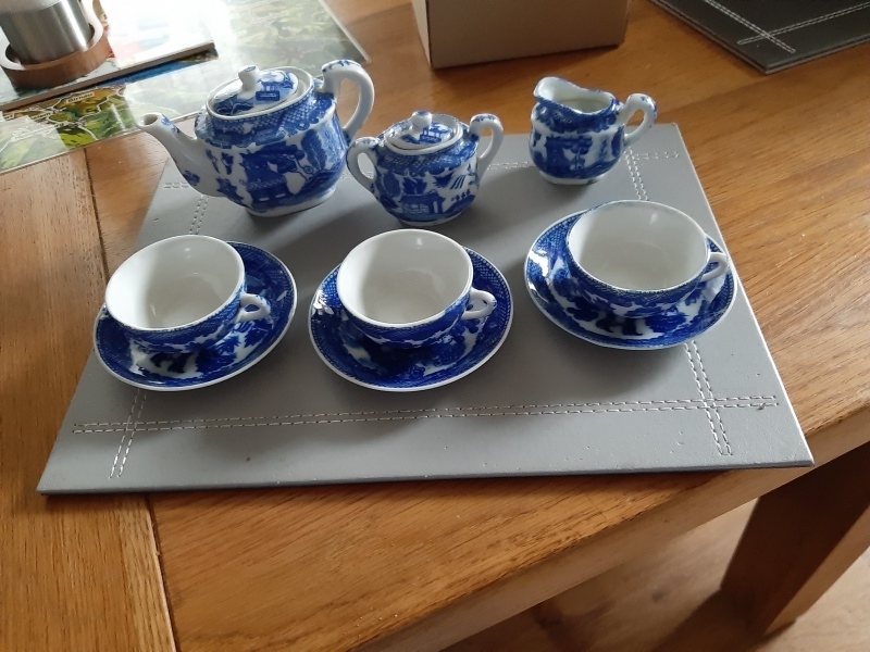 China tea set, child size. Good used condition, only 3 cups & saucers. Suitable for play house.