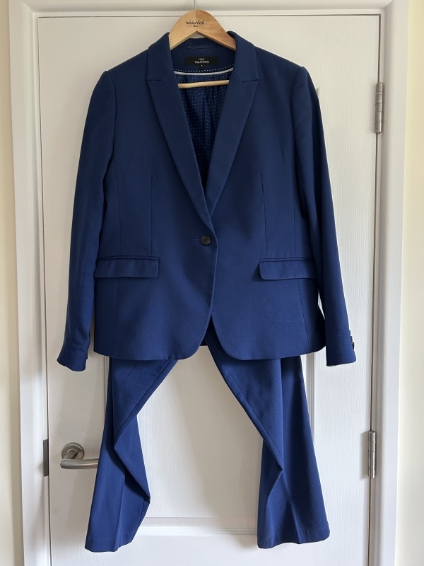 Satisfactory condition. 64% polyester/34% viscose/2% elastane. Lining 100% polyester. Jacket: B42", W40", H44", L27". Trousers: W38", H44", L26".