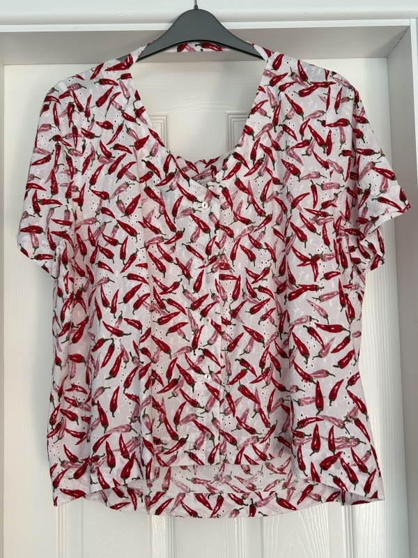 Excellent condition. Button back and neck bar. 100% cotton. Bust: 48”. Waist: 50”. Hip: 52”. Length: 21.5”.