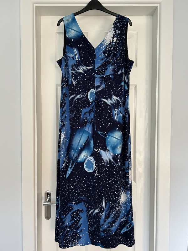 Excellent condition. Stretchy fabric. Lined. 92% polyester/8% elastane. Machine washable. Bust: 40”. Waist: 38”. Hip: 44”. Length: 50”.