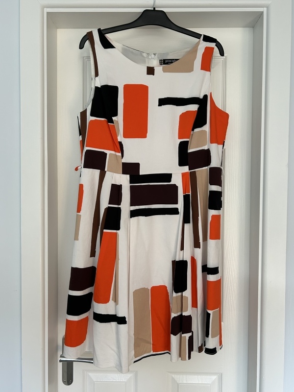 Excellent condition. Rear zip. Lined. Machine washable. 98% cotton/2% elastane. Bust: 44”. Waist: 38”. Hip: 48”. Length: 37”.