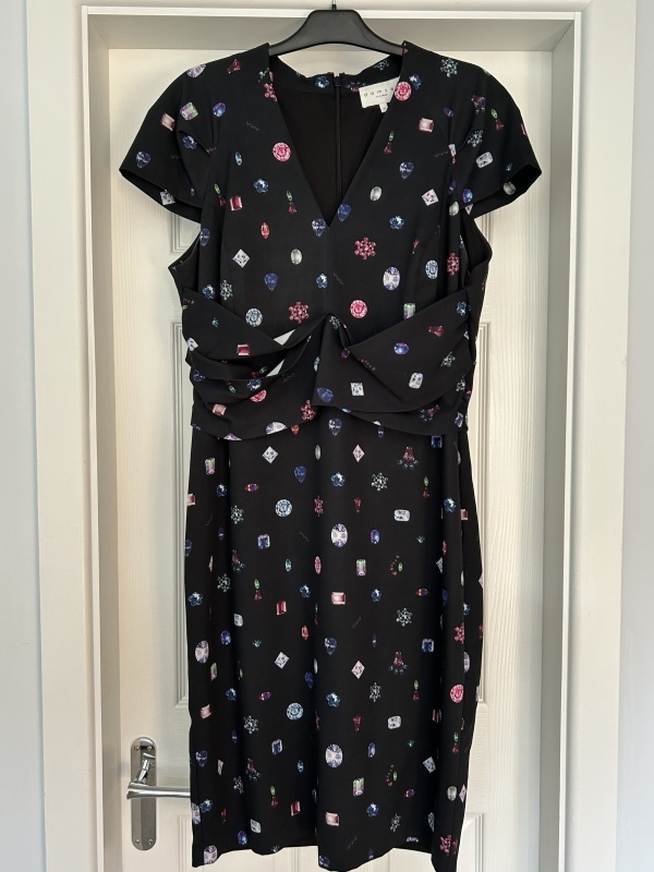 Excellent condition. Rear zip and vent. Lined. Machine washable polyester. Bust: 43”. Waist: 38”. Hip: 45”. Length: 44".