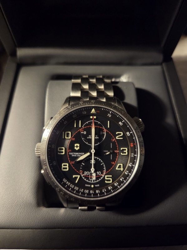 Victorinox Air Bos Mach 9 chronograph new condition hardly worn comes with box and papers. Selling for friend.