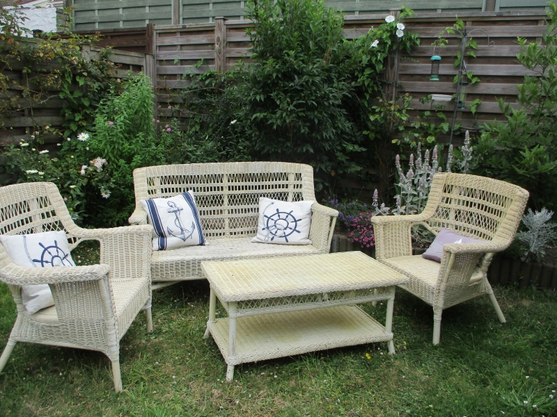 White rattan cane suite. Sofa, 2 armchairs and 2 tables. Buyer collects.