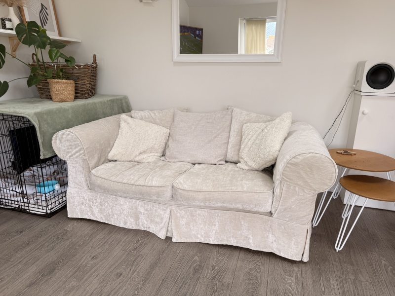 2 lovely velvet cream sofas 240w & 200w