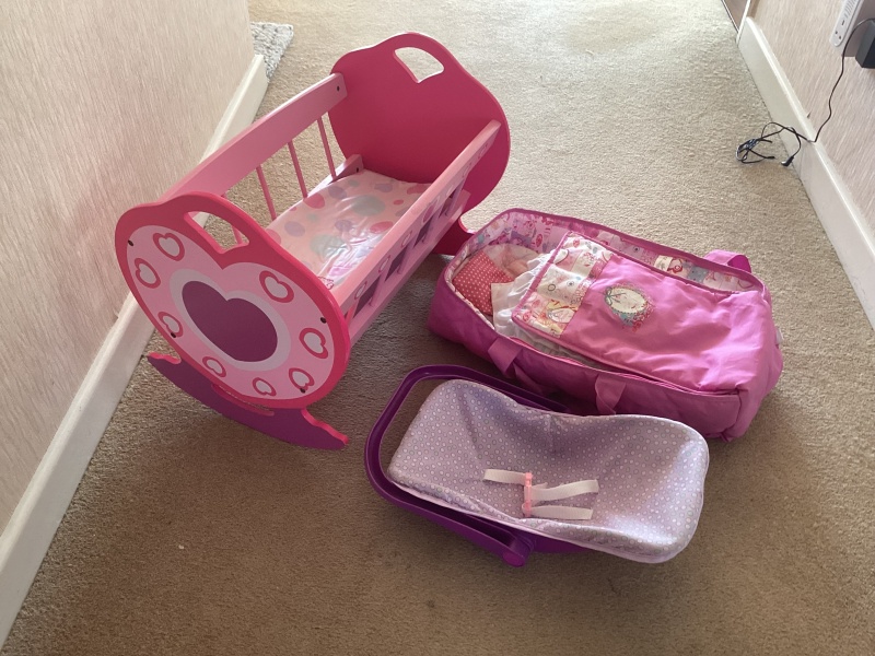 Dolls cot and dolls carrier with covers