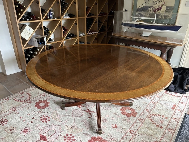 Beautiful dining table with inlay. 4’6” diameter. Free to take away