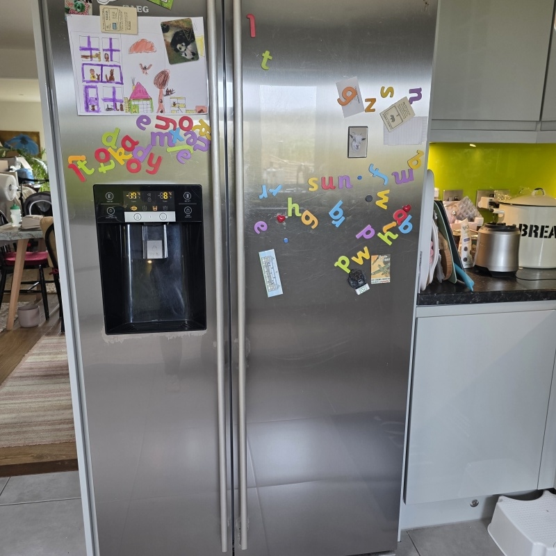 FREE. Plumbed in ice dispenser. Silver, fair condition, works perfectly. Available April