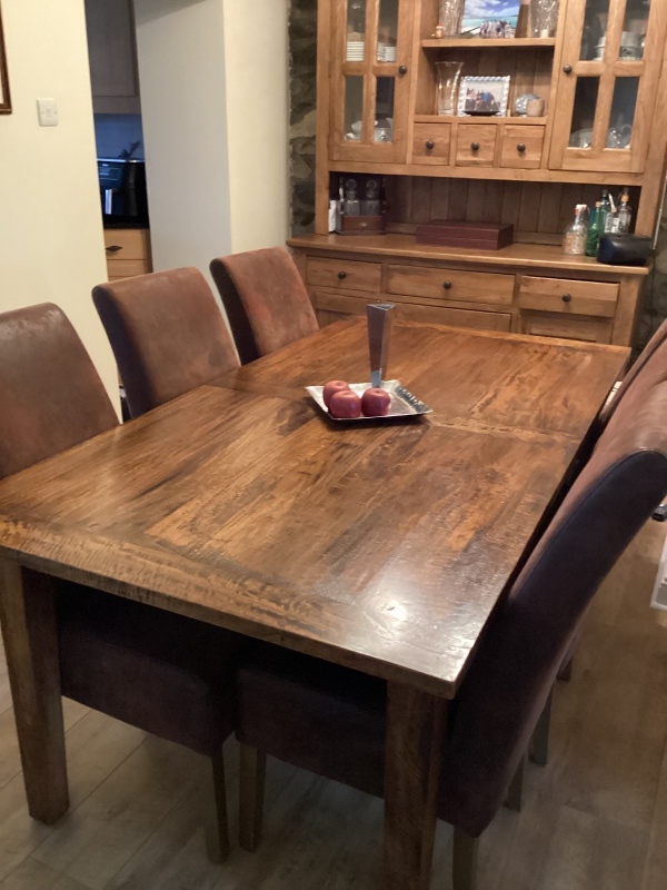 Excellent sturdy dining table with 6 quality chairs and a bench