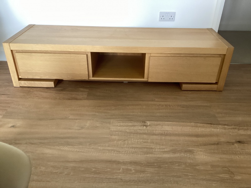 TV Stand with 2 drawers in solid light oak. Excellent condition.