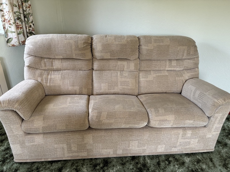 Cream settee suite-sofa and two chairs(1recliner) must collect -good condition